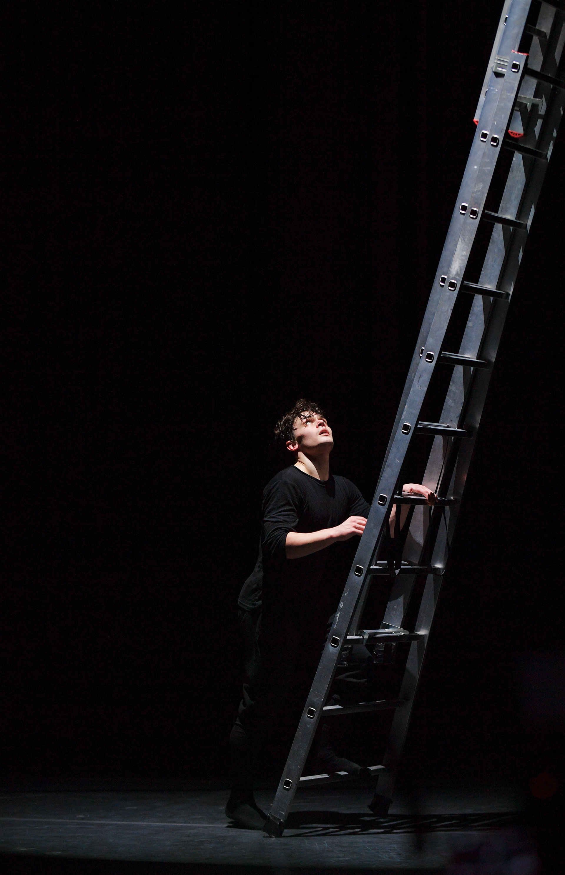 " Höhepunkt des Abends ist die Weltpremiere von „Wege“ von Aleix Martinez, der sich seit Jahren auch als Choreograf einen Namen macht. Zu den Klängen unter anderem eines Mönchschors aus Kiew inszeniert er eine metaphysische Sinnsuche. Dem Ensemble gelingt es, die Gefangenheit in der Existenz körperlich erfahrbar zu machen. Vladyslav Bondar glänzt in einem hinreißenden Solo aus atemberaubenden Dreh-Sprung- und Fallbewegungen. Bilder von melancholischer Schönheit. "